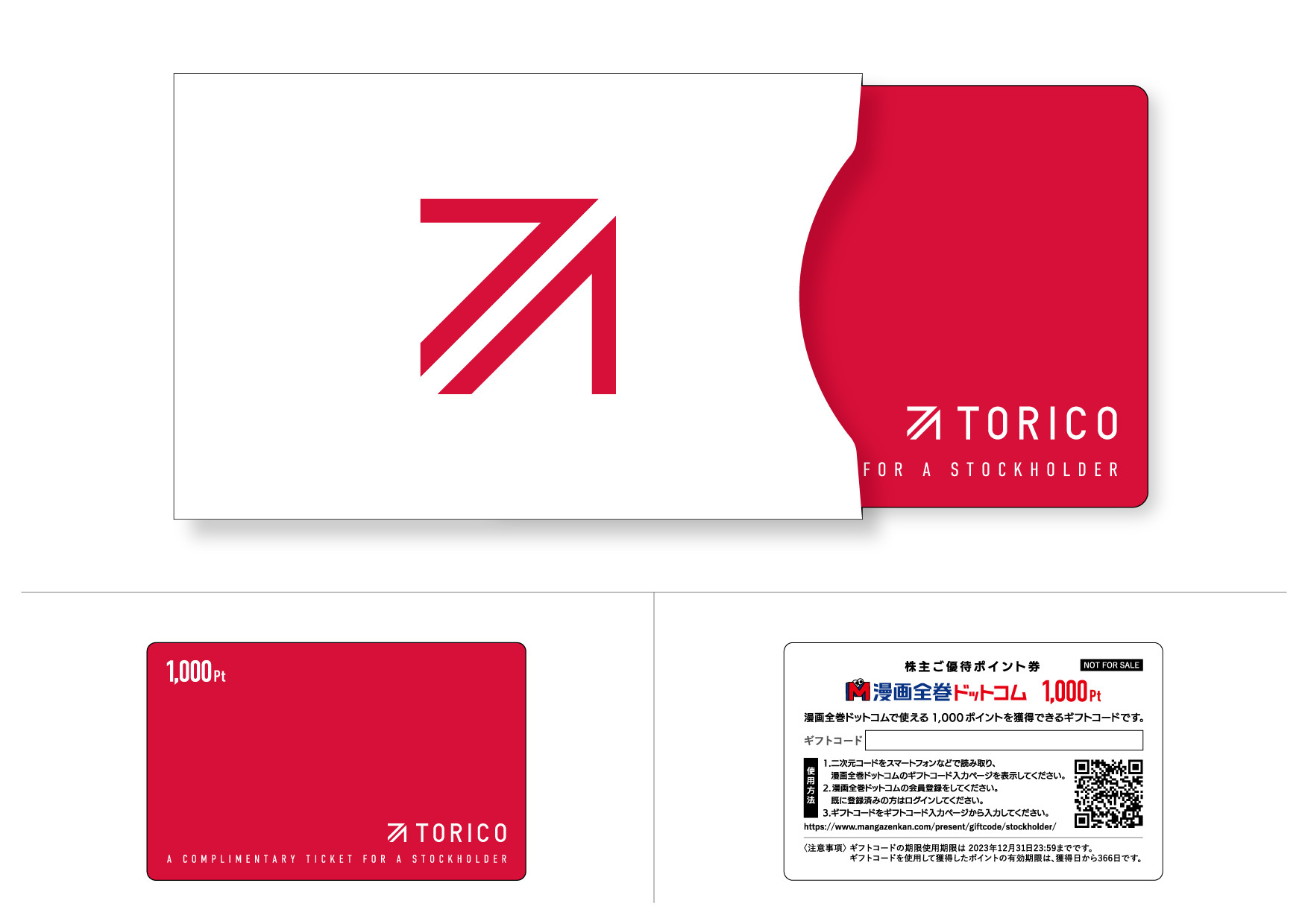 このページは、株式会社TORICOから発行された 「株主ご優待ポイント券」に記載されているギフトコードを入力するページです。